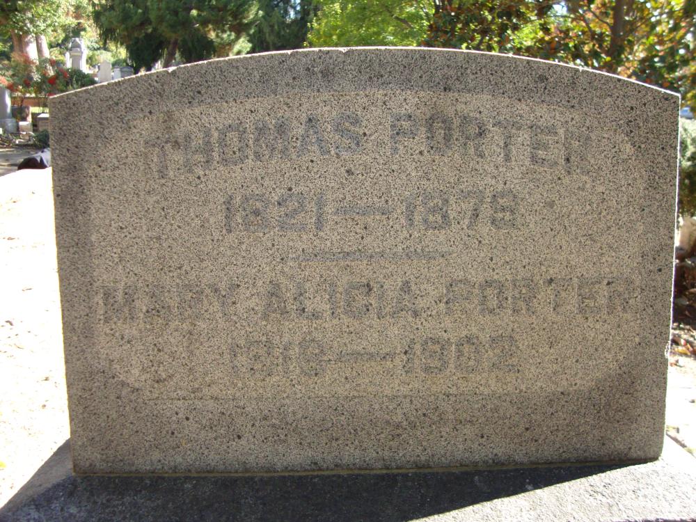 | Names | Thomas and Mary Alicia Porter |