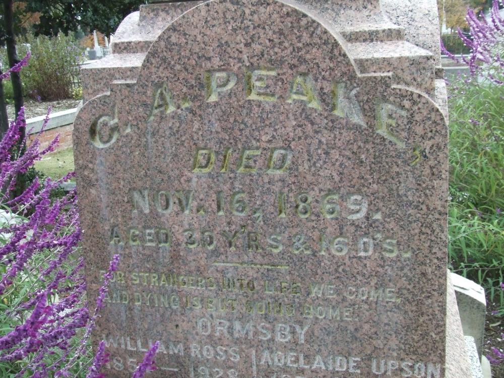 Names C.A. on monument Peake