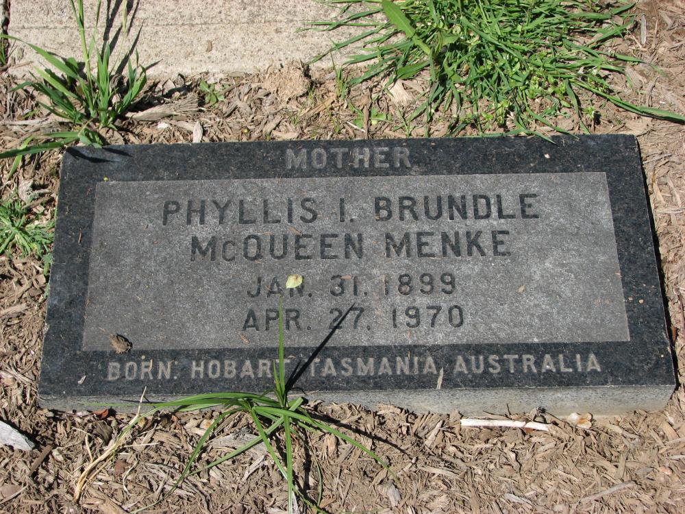 | Names | Phyllis I. Brundle McQueen Menke |