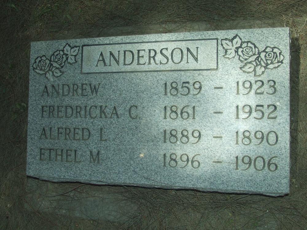 Names Alfred L. Anderson, Andrew Anderson, Ethel M. Anderson, and Fredricka C. Anderson