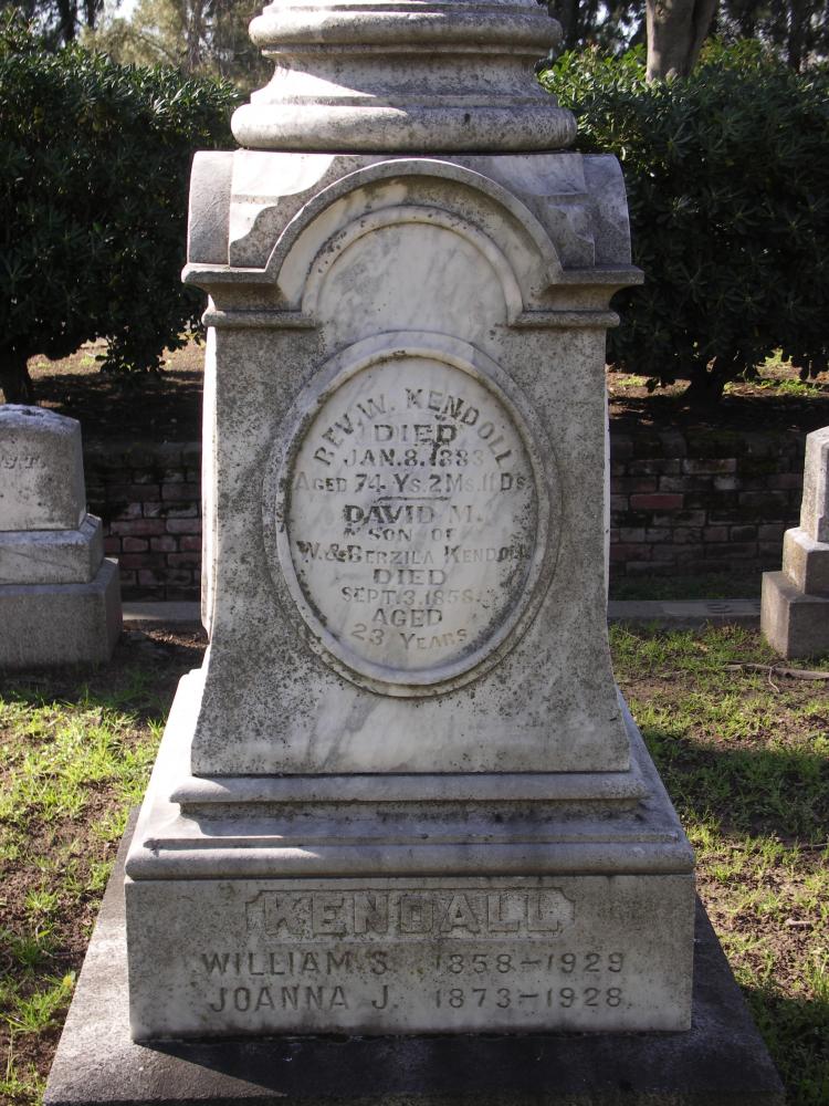 Names David M. Kendall, Joanna J. Kendall, Rev. William Kendall, William S. Kendall, Mary E. Ross Roan, Charles H. Ross, David S. Ross, and Frances M. Wing Ross