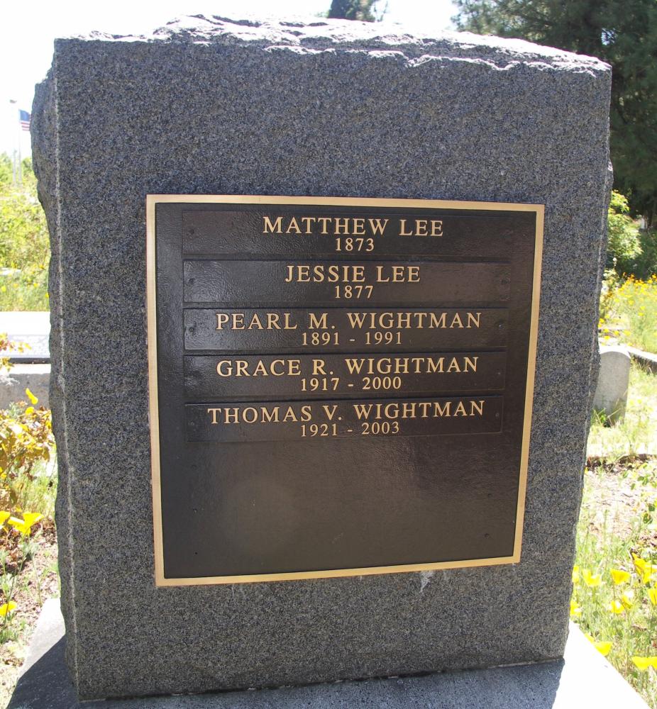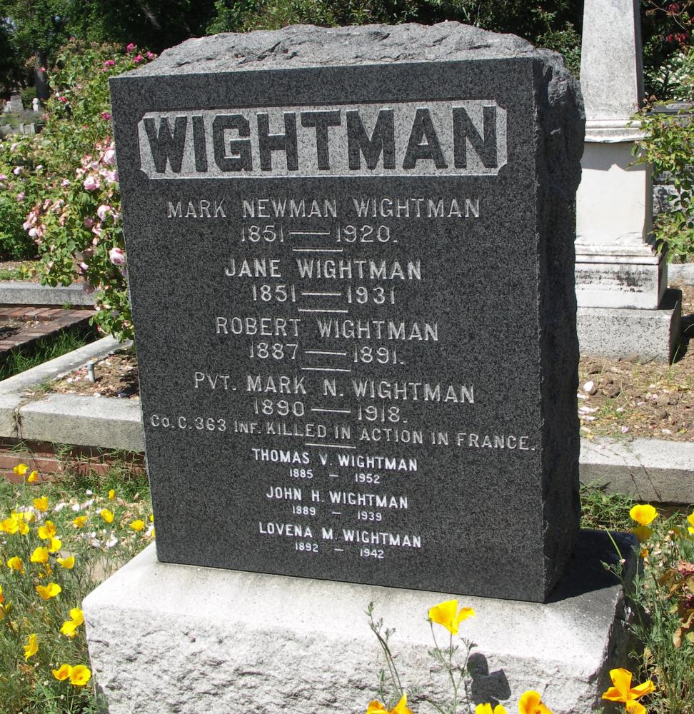 | Names | Grace R. Wightman, Jane Wightman, Jessie Lee Wightman, John H. Wightman, Lovena M. Wightman, Pvt. Mark N. Wightman, Mark Newman Wightman, Matthew Lee Wightman, Robert Wightman, and Thomas V. Wightman |