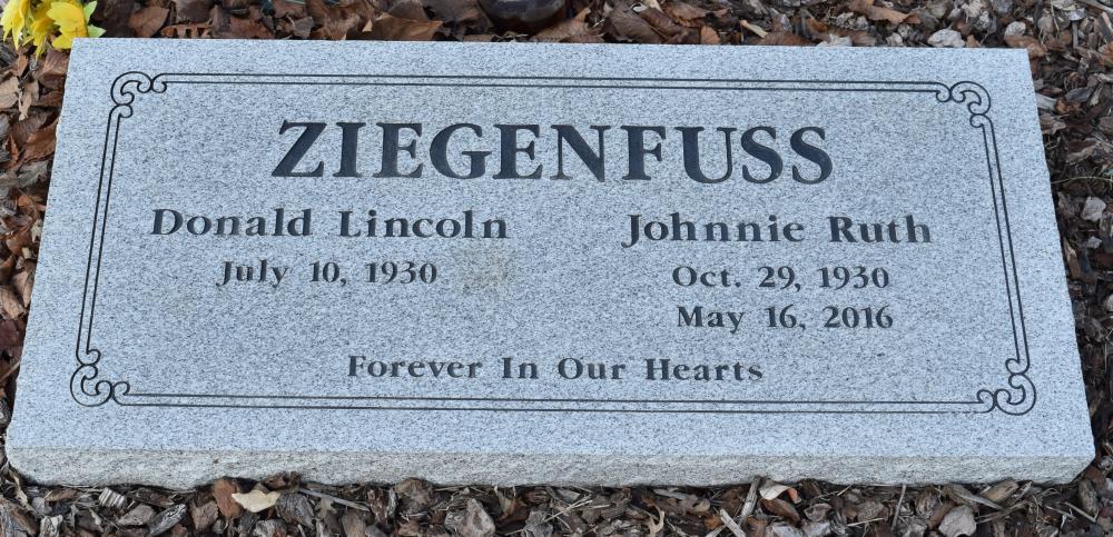 Names Donald Lincoln Ziegenfuss and Johnnie Ruth Ziegenfuss