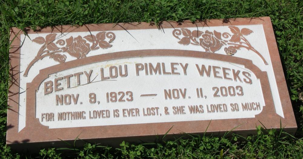 | Names | Betty Lou Pimley Weeks |