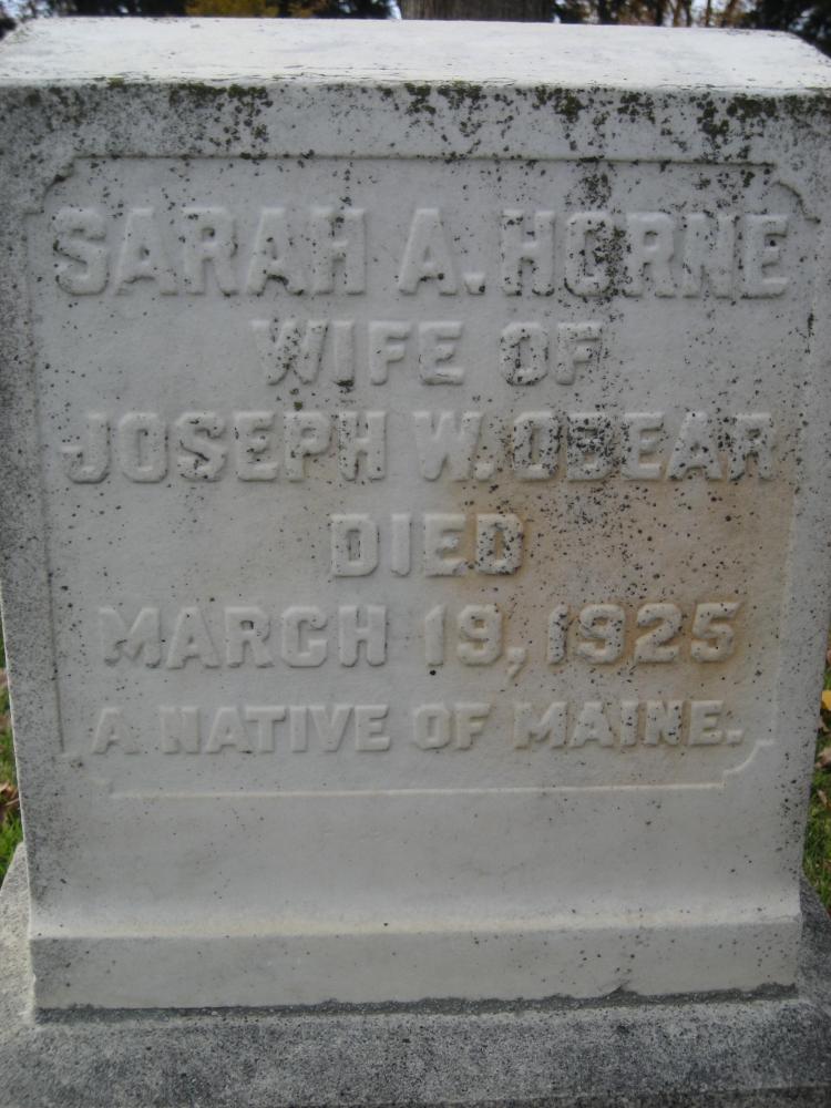 | Names | Joseph W. Obear and Sarah A. Horne Obear |