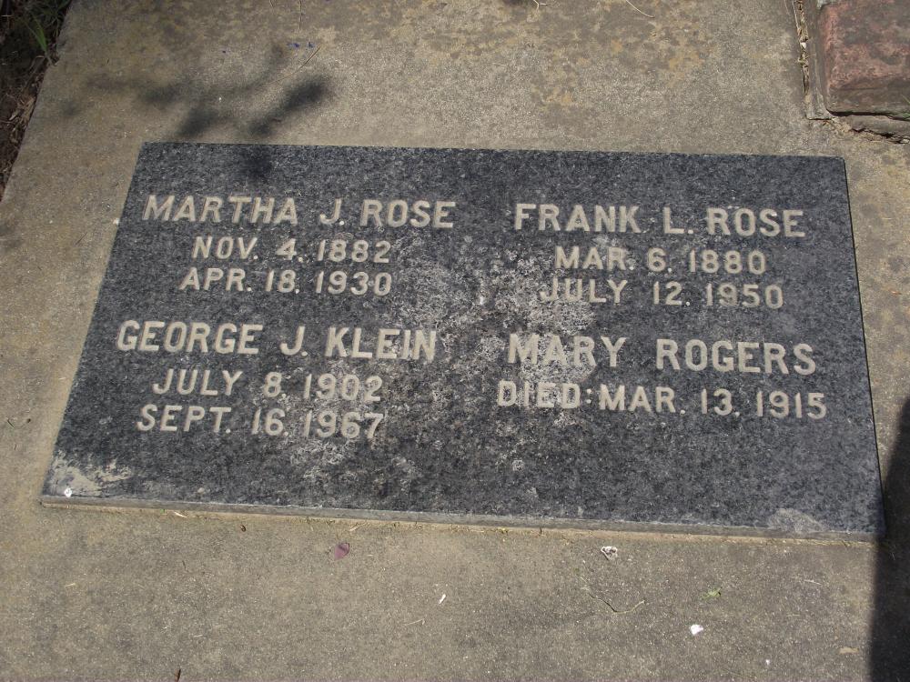 | Names | George J. Klein, Mary Rogers, Frank L. Rose, and Martha J. Rose |